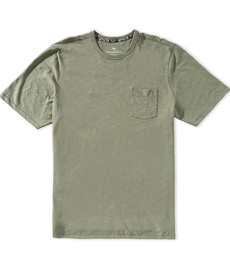 From Tommy Bahama Big & Tall, this t-shirt features: Crew neckline with inside hibiscus taping Short sleeves left side patch pocket with logo embroidery Straight hem Pullover construction Cotton Machine wash/tumble dry Imported.
