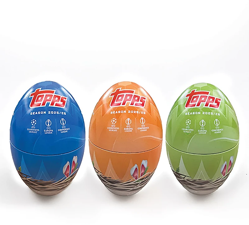 Celebrate your favorite footballers by grabbing the Topps 2026 UEFA Club Competitions Spring Tin. This tin comes with 59 total cards, including an Egg parallel, 2 insert cards, 2 Spring parallels and 54 other cards to add to your collection.