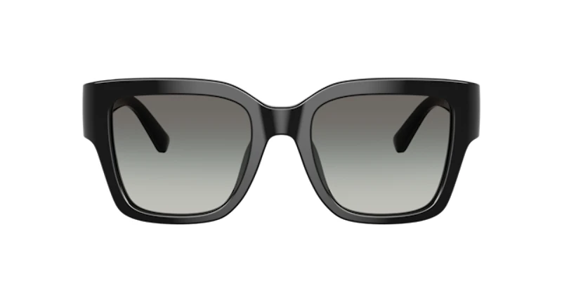 The tory burch ty7228u sunglasses exude modern sophistication with square frames designed from bio-based plastic, ensuring sustainability and style. The black sunglasses feature front frames enhanced by transparent acetate temples with a cut-out double t logo for a unique touch. Grey gradient sunglasses lenses add depth to the design while providing advanced uva/uvb protection. Complete with a subtle saddle bridge and universal fit, these full-rim tory burch sunglasses are effortlessly chic.