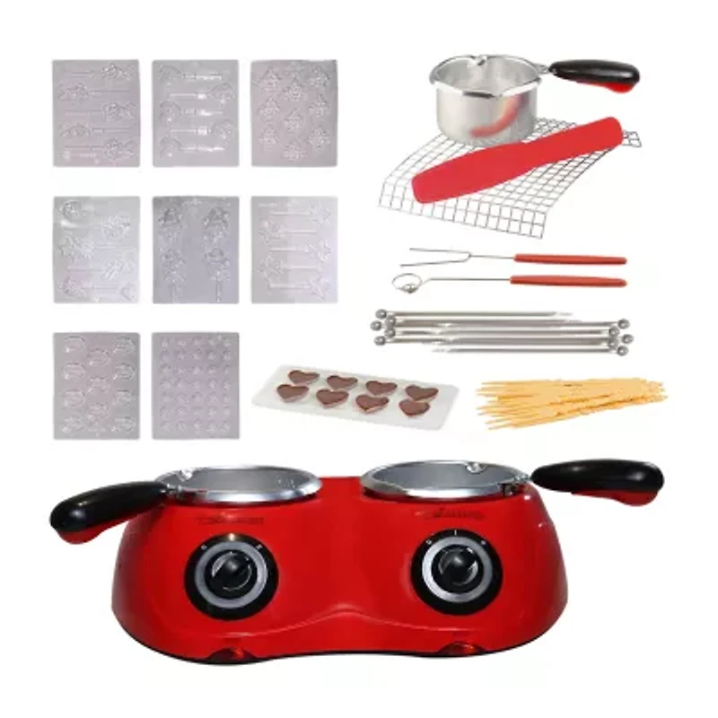 From sweet-lovers to DIY-ers, Total Chef has you covered: With two 8.8 oz (250 g) melting pots and a 100+ piece accessory kit, the Deluxe Chocolatiere has everything you need to serve a delicious chocolate fondue dessert, create an array of homemade candies, or add a touch of elegance to cake or cookie decorating - perfect for family get-togethers, handmade holiday gifts, and much more.