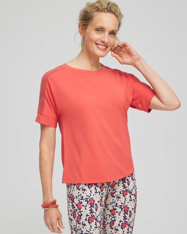 Tommy Bahama Kauai Caviar Beaded Crew Neck Rolled Short Sleeve Tee