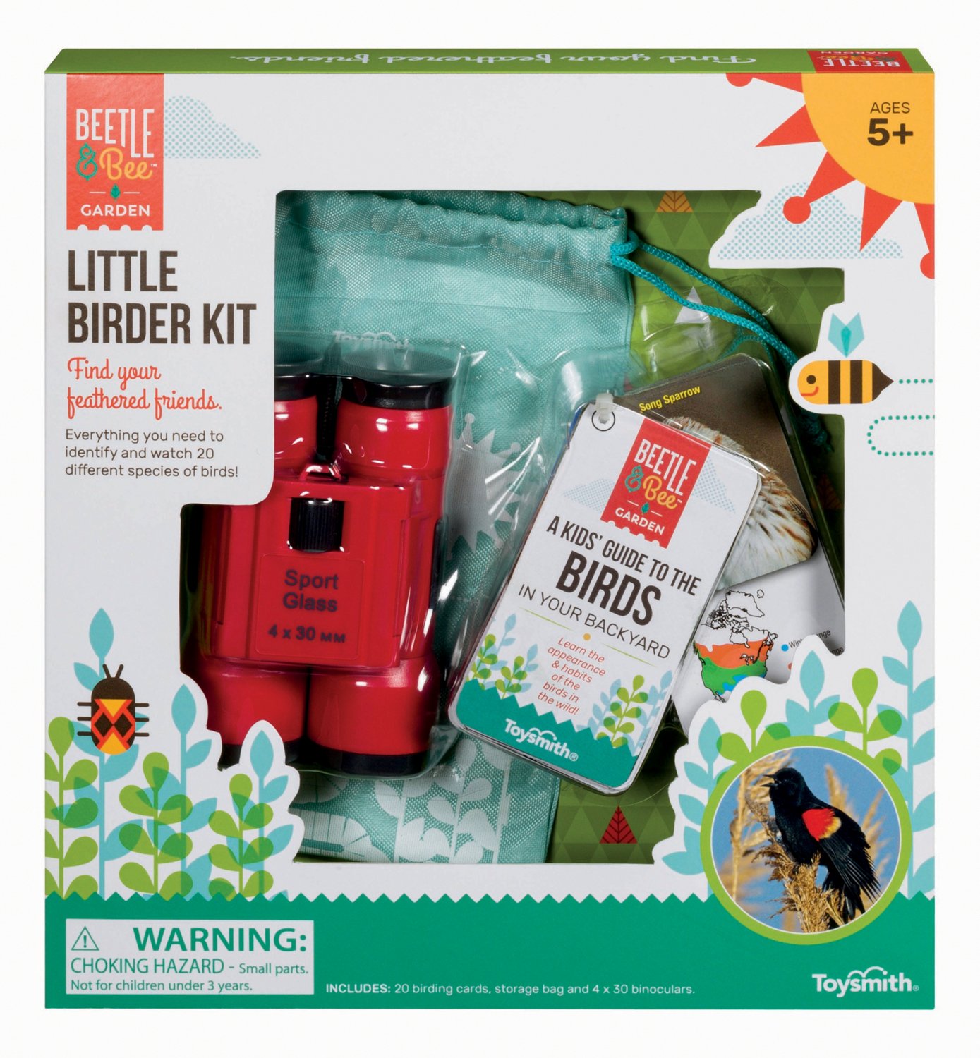 Have a blast searching for birds with the Toysmith Little Birdier Set. The 20 bird identification cards help you recognize what you spot, and the pair of 4x30-millimeter binoculars allows you to clearly view each bird. The pocket-sized Kids' Guide to Birds in Your Backyard lets you learn as you explore, and the illustrated drawstring storage bag delivers convenient carrying.