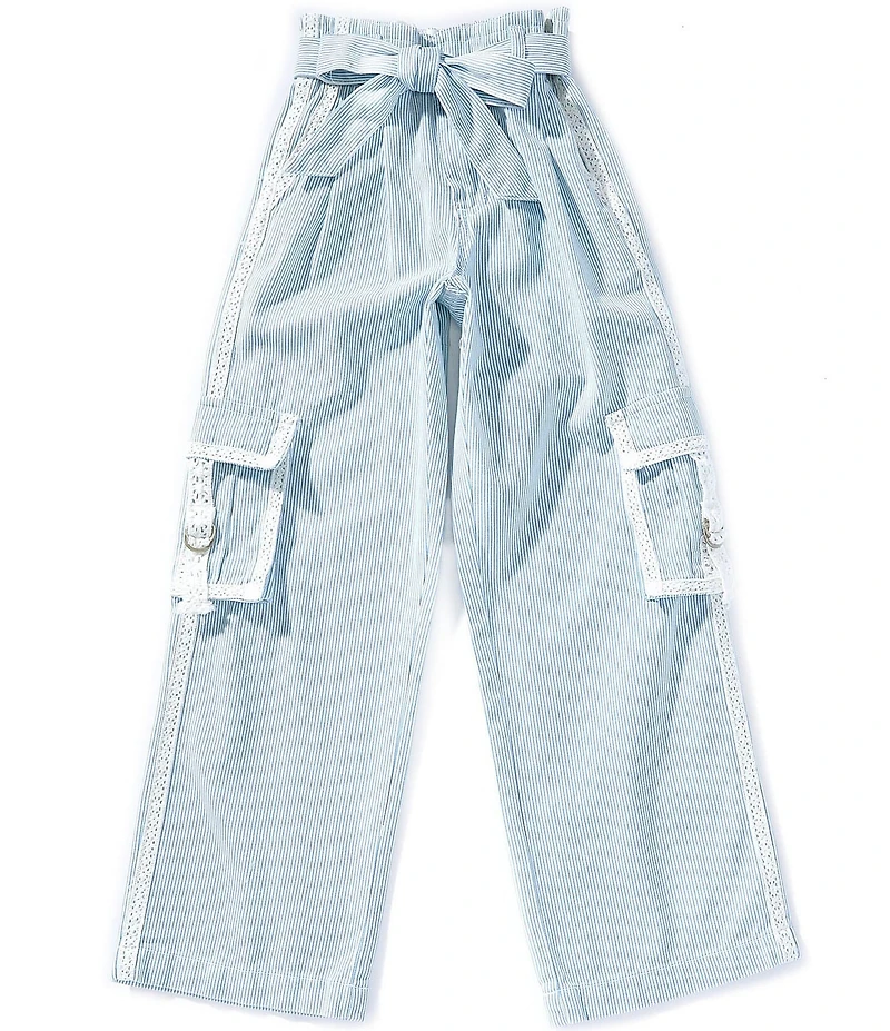 Tractr Big Girls Stripe Straight Leg Twill Cargo Crochet Trim Pants