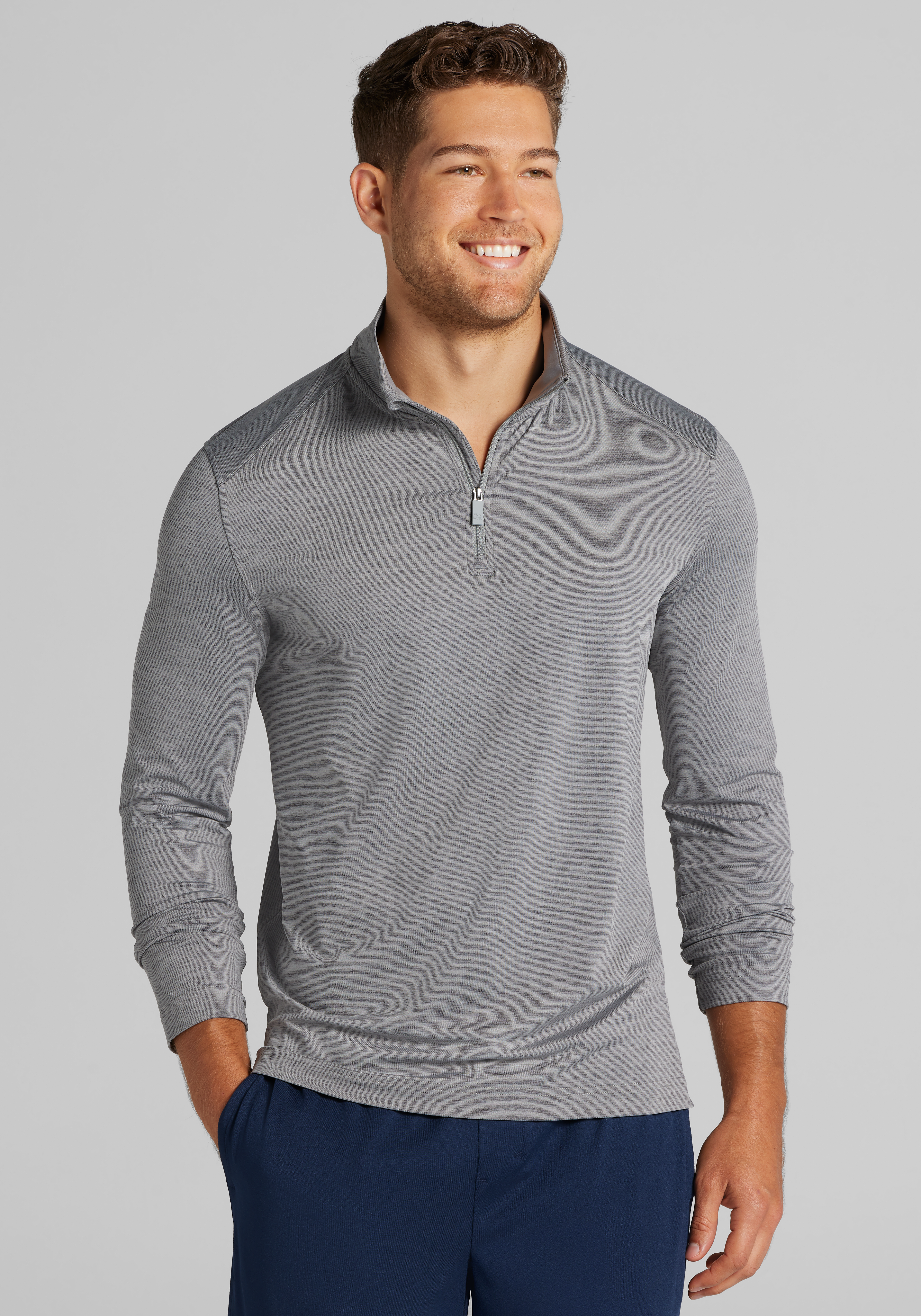 Designed for comfort on the move, this Traveler Collection Performance 1/4-zip pullover features a subtle space-dyed pattern for visual texture and modern appeal. The performance fabric offers stretch, moisture-wicking, and easy-care convenience, making it perfect for travel, commutes, or weekends on the go. Finished with a stand collar and zip placket, it layers effortlessly over tees or under jackets.