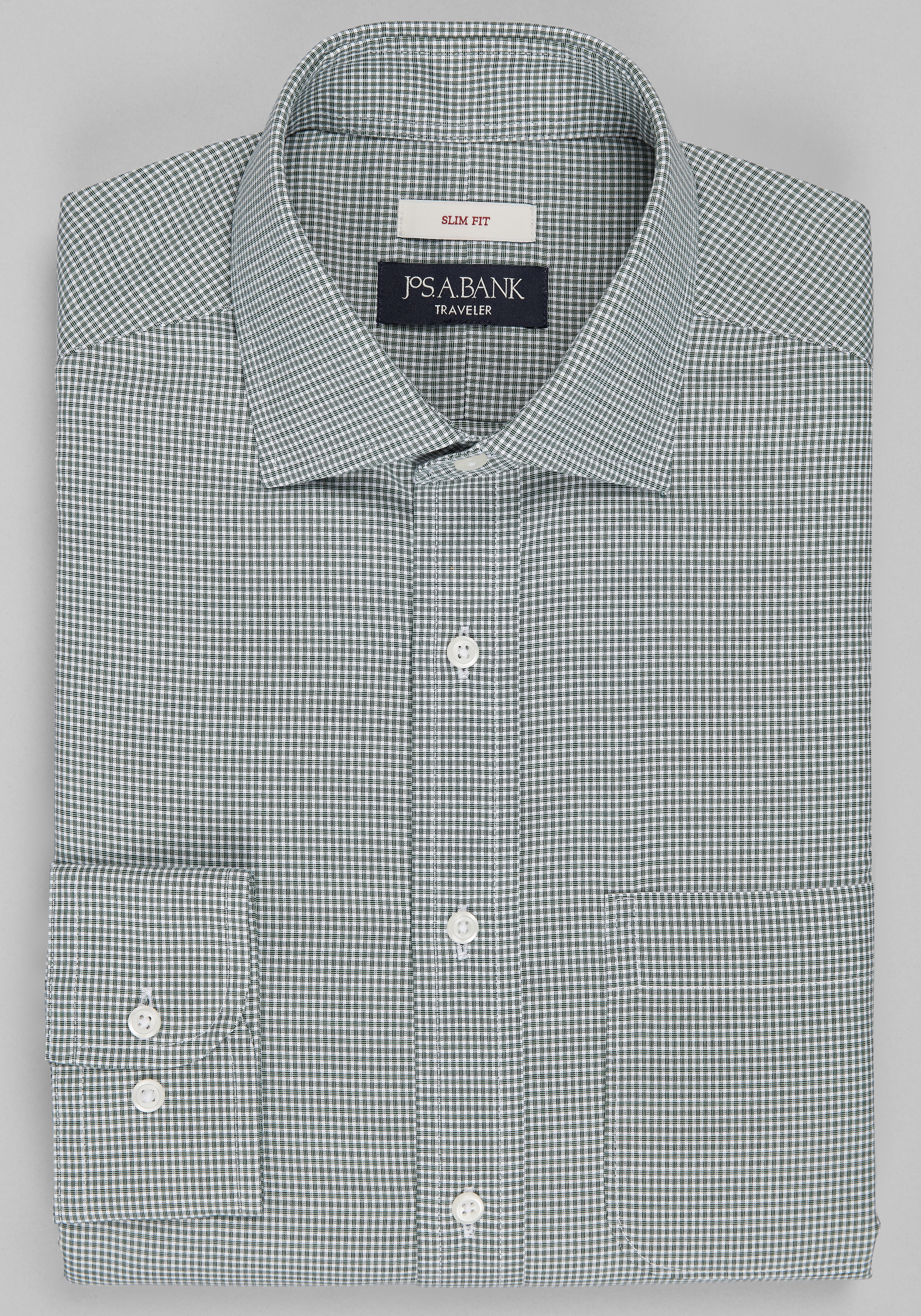 Traveler® Collection Slim Fit Spread Collar Micro Check Dress Shirt