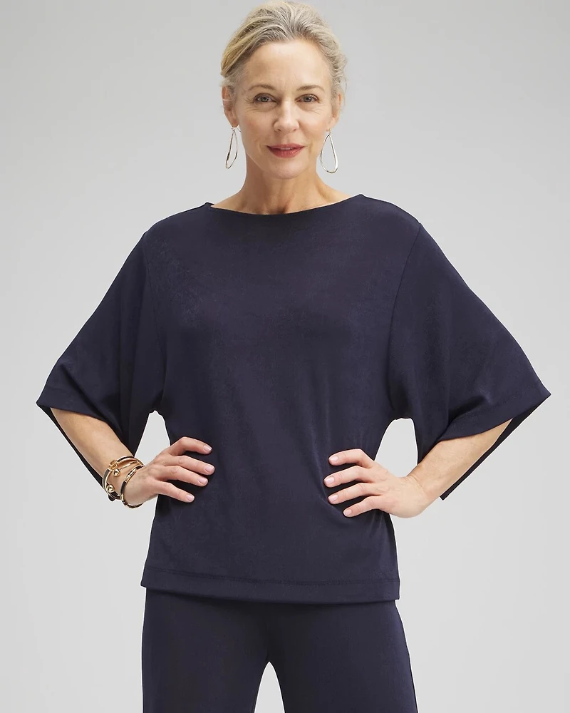 The Travelers™ Kimono Sleeve Top has a classic vacation-ready fit. Made with our travel-friendly, wrinkle-resistant fabric, this top features kimono sleeves for a hint of drama. This top pairs perfectly with any of our Travelers™ wide or slim leg pants for a look that stays fresh, no matter how long it stays in your suitcase.