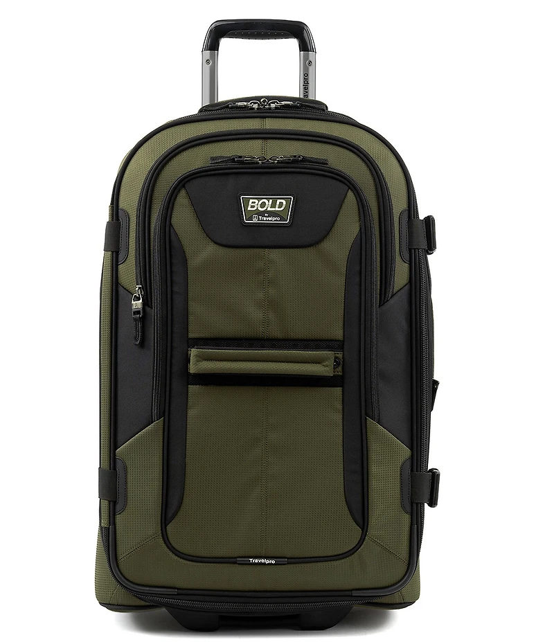 From the Bold collection by TravelPro, this rollaboard features: Made of rugged, high-density polyester fabric with water repellent coating for greater stain resistance Strong, telescoping aircraft-grade aluminum handle stops at 38" and 42" for users of different heights High performance ball-bearing inline skate wheels deliver a smooth roll Protective reinforced wheel housings, skid guards and molded corner guards protect high wear points Compression straps for additional security have rubberized buckles for comfort Interior mesh pocket is conveniently built into the lid Large, zippered interior wet pocket is ideal for damp or dirty items Adjustable hold-down straps keep contents in place Features multiple cushioned neoprene carry handles 2" expansion provides additional packing capacity Backed by Travelpro® Built For A Lifetime Limited Warranty with our Trusted Companion Promise Approx. overall dimensions: 26" x 16.5" x 10" Approx. case dimensions: 25"x 16" x 10.5" Approx: 8.2 lbs Imported.