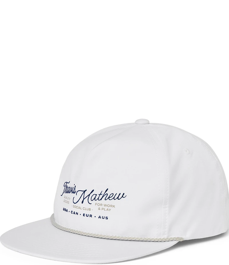From TravisMathew, this hat features: Raised flocked graphic Rope detail Adjustable snapback closure Polyester/recycled polyester/cotton/elastane Spot clean Imported.