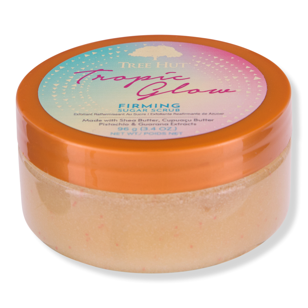 SHEA SUGAR SCRUB TROPIC GLOW. Benefits: Smells like warm, summer skin with key notes of Almond, Golden Amber and Australian Sandalwood. Exfoliating body scrub removes dull, dry skin to reveal glowing, soft, smooth skin. Deeply nourish and balance skin's hydration to help restore skin's natural glow. Tree Hut Tropic Glow Shea Sugar Scrub is paraben free, vegan, sulfate free, alcohol free, contains no formaldehyde donors, has a no-slip formula and long-lasting fragrance. Key Ingredients: Cupuau Butter helps prevent dry skin and restore the feeling of firmer elasticity. Guarana helps to enhance the appearance of smoother skin. Sugar is a natural exfoliant that effectively polishes away dead skin while helping to boost circulation to the skin surface. Natural Shea Butter is known to deeply moisturize, nourish and soften dry, skin while helping to promote elasticity. Tree Hut Shea Sugar Scrubs feature a 6-oil blend of: Avocado Oil, Macadamia Oil, Sweet Orange Oil, Sweet Almond Oil, Evening Primrose Oil, Safflower Oil. :