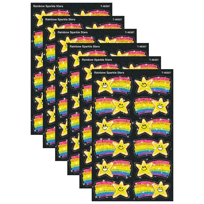TREND Enterprises® Rainbow Stars Sparkle Stickers®, 6 Packs of 144