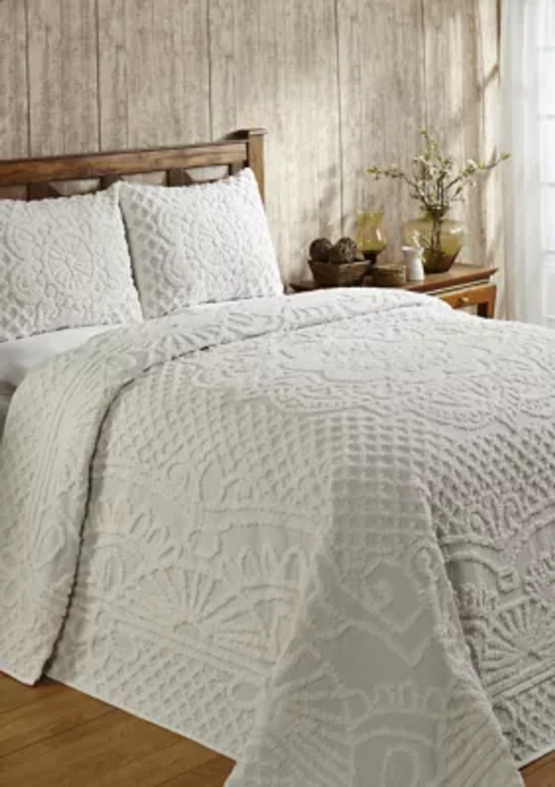 Freshen up your bedroom interiors with the enchanting style of this Trevor Collection bedspread and sham set. Featuring a beautiful tufted medallion design in warm tones, it is ideal to use as a layering piece or an alternative to your comforter for a new solid appeal. This cotton chenille tufted bedspread at Better Trends is soft and plush and offers the immense comfort that you desire. Its medallion motif can complement easily your existing décor and will sure to add a new decorative element to your bedroom. Offered in sizes: Twin: 81 in W x 110 in L Full: 96 in W x 110 in L Queen: 102 in W x 110 in L King: 120 in W x 110 in L Twin size comes with 1 standard sham of 21-inches x 27-inches and rest all sizes comes with 2 standard shams. Imported Material & Care Chenille fabric Cotton Machine washable