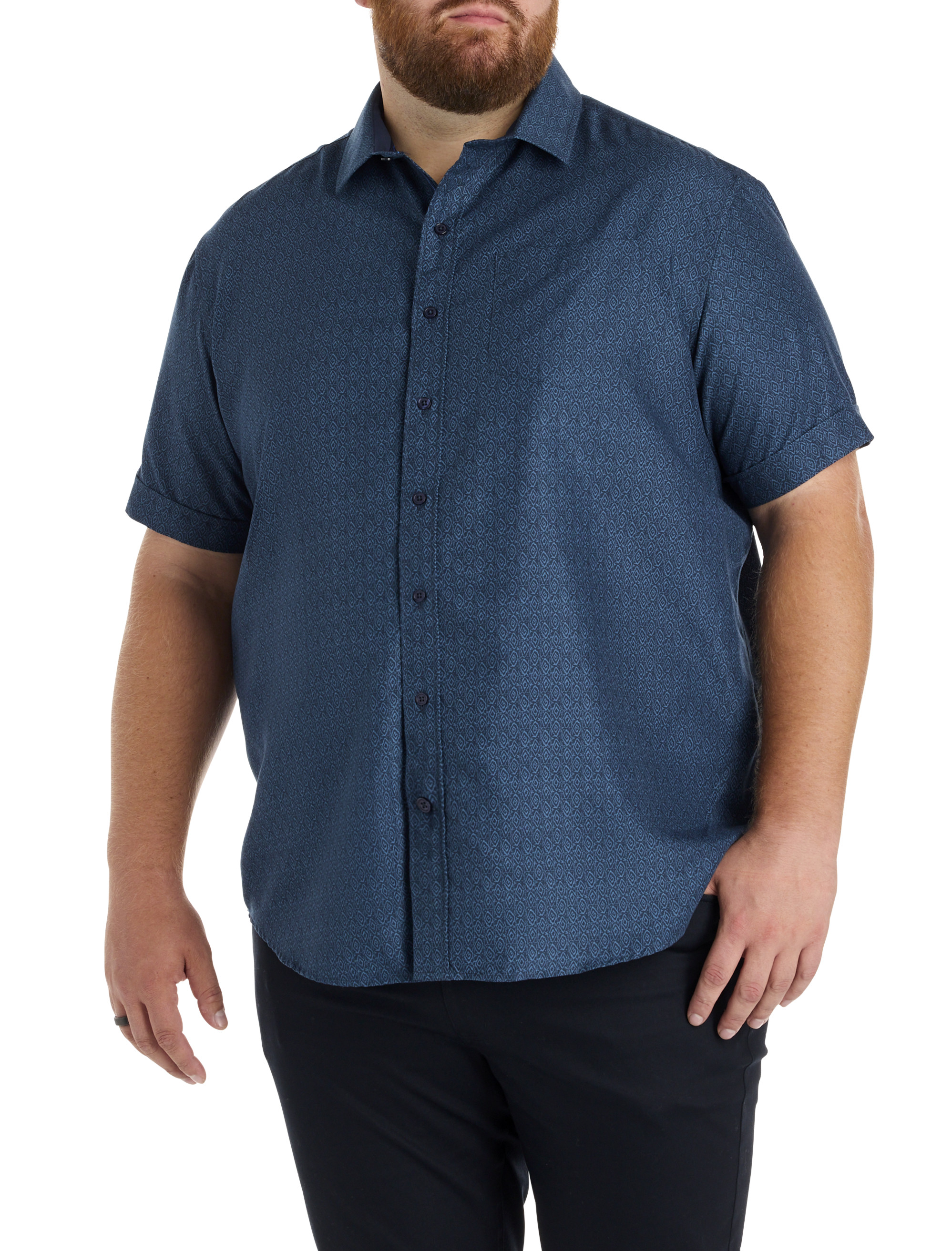 Here's a casual shirt you'll reach for again and again. Crafted of silky, smooth polyester microfiber with an eye-catching tribal print pattern, it's designed at DXL to precisely fit the proportions of Big and Tall guys, allowing for the freedom to move without restriction. Wrinkle-resistant and ready to wear right out of the dryer, no ironing or dry cleaning required, it's the perfect choice to wear untucked with shorts, jeans or twills for that effortlessly, put-together look.