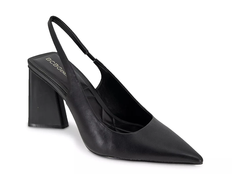 Highlight a favorite ensemble with the Trina pump from BCBGeneration. The architectural heel punctuates this slingback pump styled with a pointed toe to elevate the chic appeal.