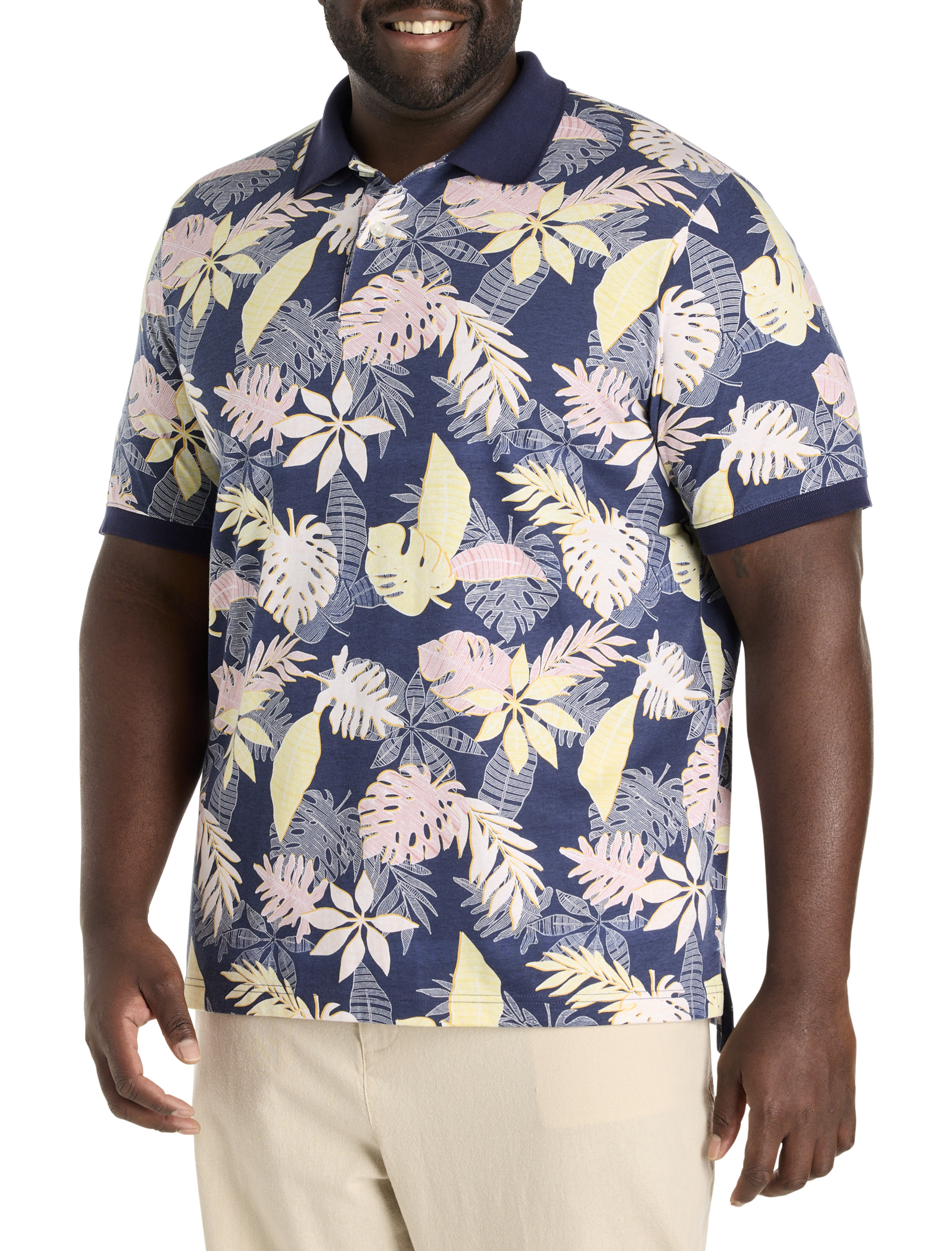 Update your wardrobe with this Harbor Bay polo that has a tropical vacation kind of vibe. Designed at DXL in a cotton and polyester blend with proper proportions and an ideal fit for Big and Tall guys, it's an easy-to-wear look that allows for the freedom to move without restriction and is sure to be a favorite for home, travel or every day wear.
