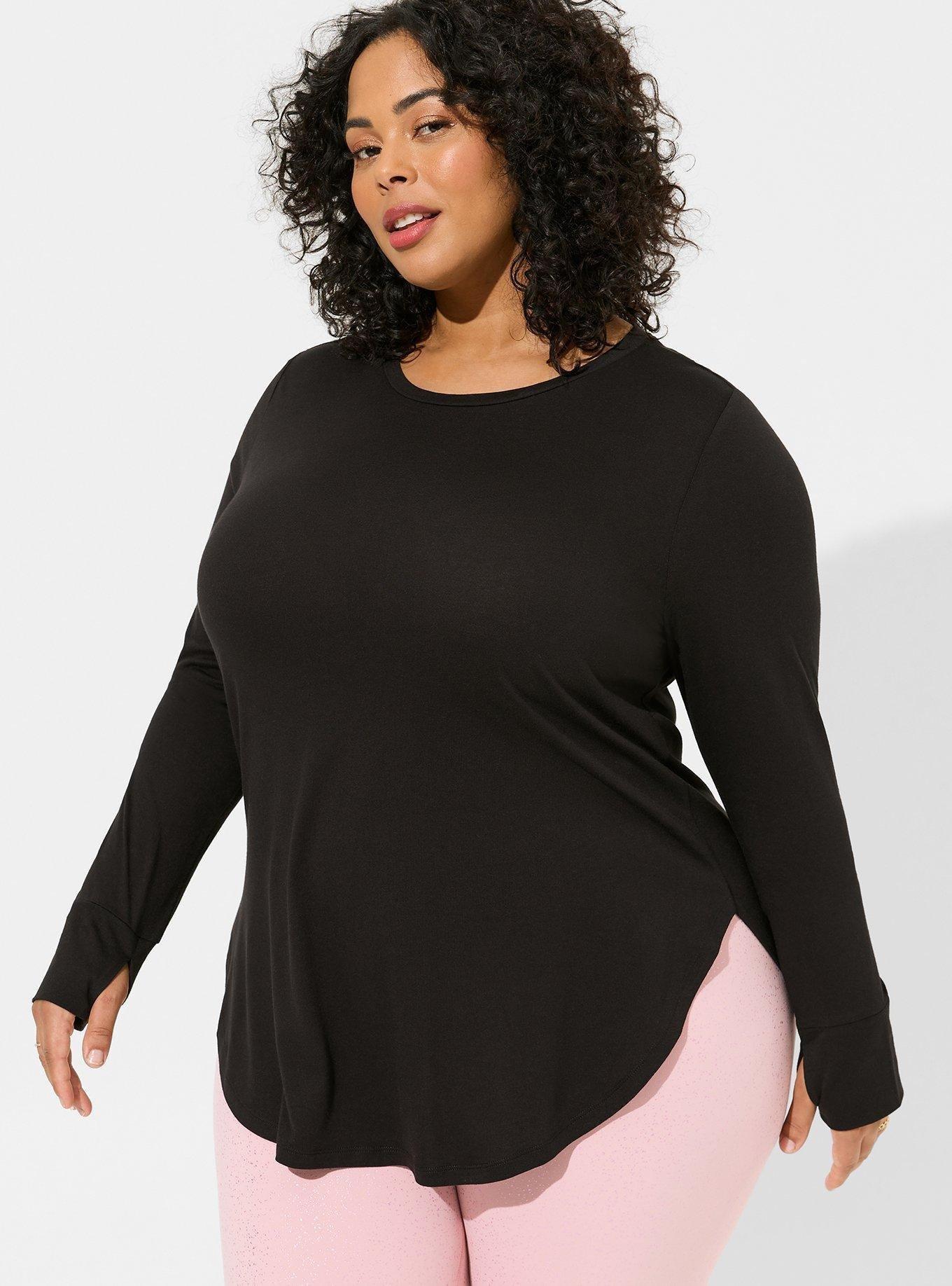 FIT Tunic length. Measures 32'' from shoulder (size 2). MATERIALS + CARE Performance Cotton knit fabric: Our active-ready cotton jersey is naturally soft, drapey and perfect for exercise and everything else. Stretch level: Medium 2-way stretch. Breathable to keep you cool. Moisture wicking keeps you dry. 51% cotton, 49% modal. Machine wash cold. Tumble dry low. Imported. DETAILS Crew neckline. Long sleeves with thumbholes. TRU Meet TRU—our performance-forward collection made to move with you. Buttery-soft, breathable, and built for real life, every piece flexes with every version of you.