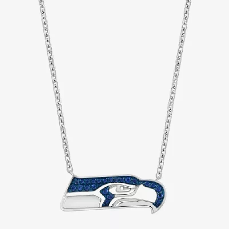 True Fans Fine Jewelry Seattle Seahawks Unisex Adult Blue Cubic Zirconia Sterling Silver 18 Inch Pendant Necklace