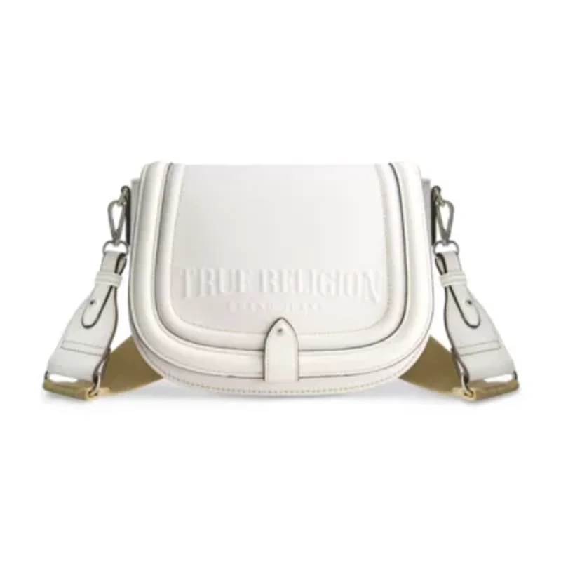 True Religion Distressed Logo Denim Saddle Bag