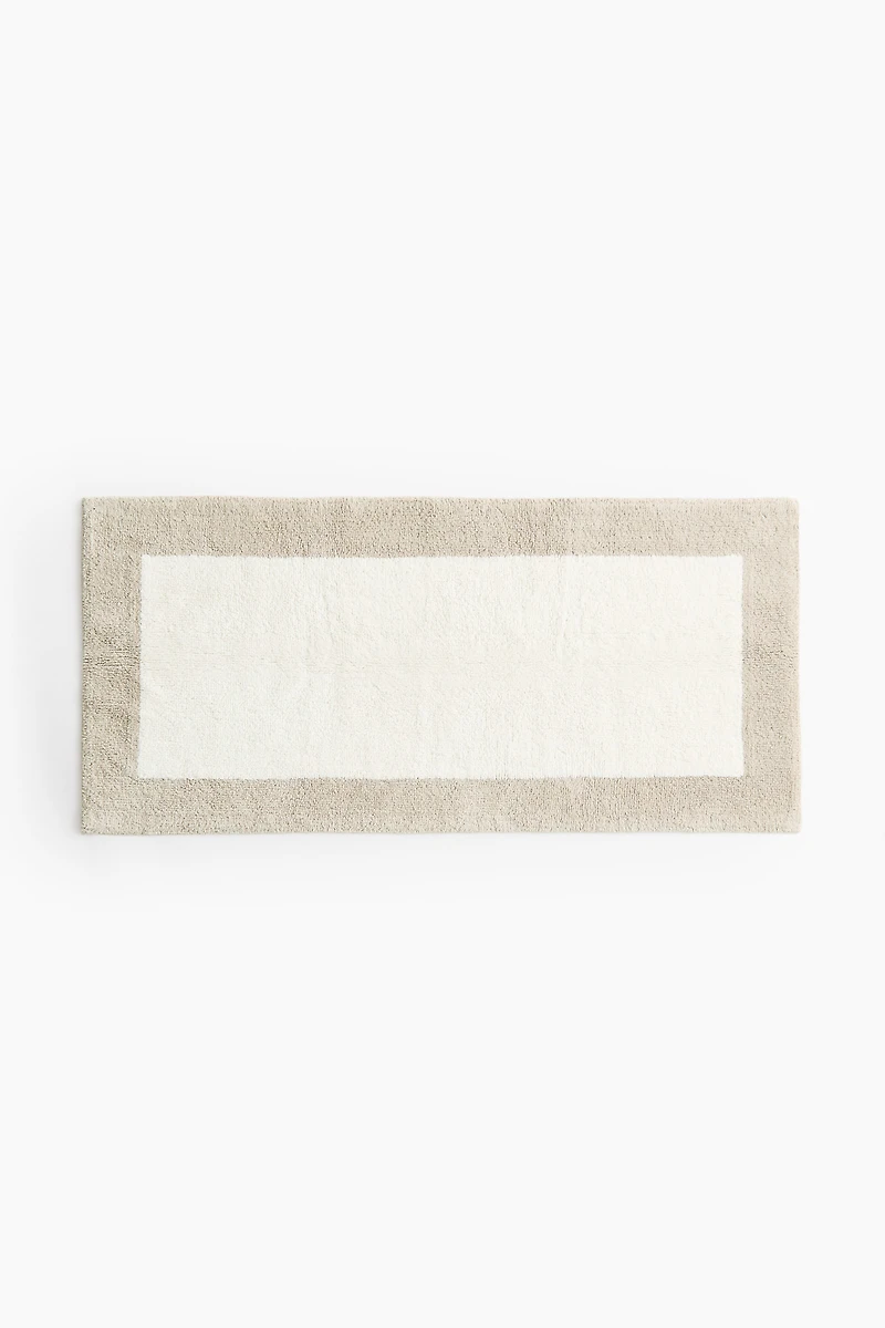 Bath mat in tufted cotton with a soft, cozy feel. Contrasting border at front and non-slip protection at back.