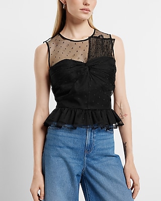 Tulle Polka Dot Twist Front Peplum Tank in Chattanooga, TN