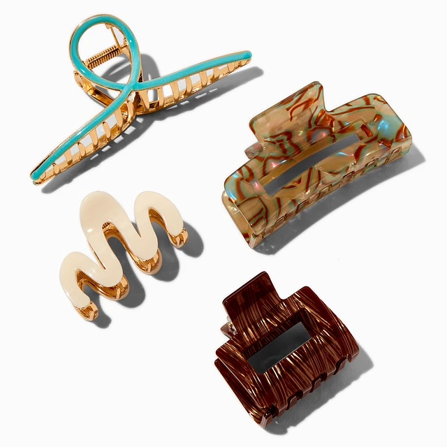 Turquoise & Brown Textured Hair Claws - 4 Pack