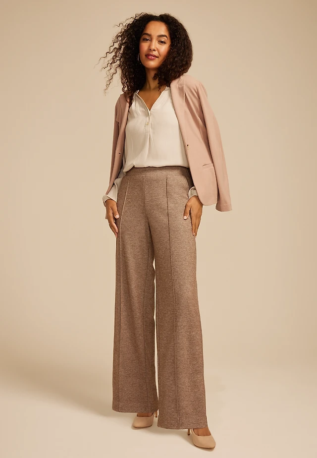 Tweed Knit High Rise Wide Leg Pant