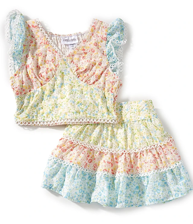 Tween Diva Big Girls Flutter-Sleeve Mixed Floral-Printed Top & Matching Skirt Set