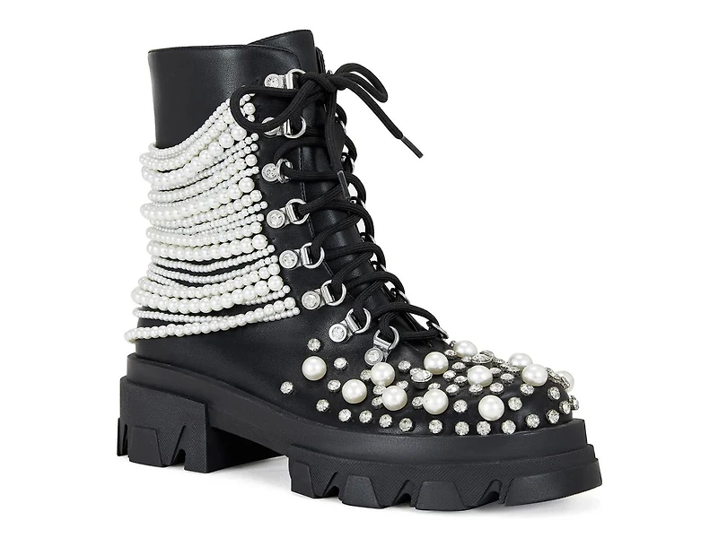 Bring a bit of edge and shine to your look with the Twinkley bootie from Azlea Wang. Beaded strands catch the eye, while the platform sole and combat-inspired silhouette round out your look with ease.