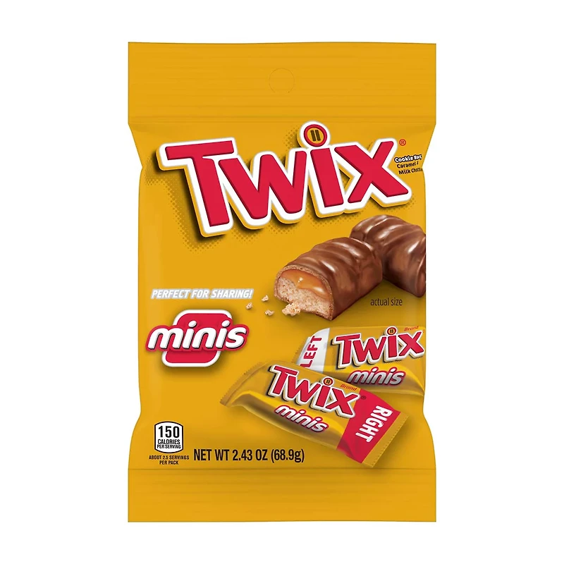 The convenient 2.43 oz bag is ideal for stashing in your desk drawer, tossing into your bag, or sharing with friends and family during movie nights or gatherings. Whether you're on Team Left Twix or Team Right Twix, these mini bars are sure to satisfy your sweet tooth and bring a smile to your face.