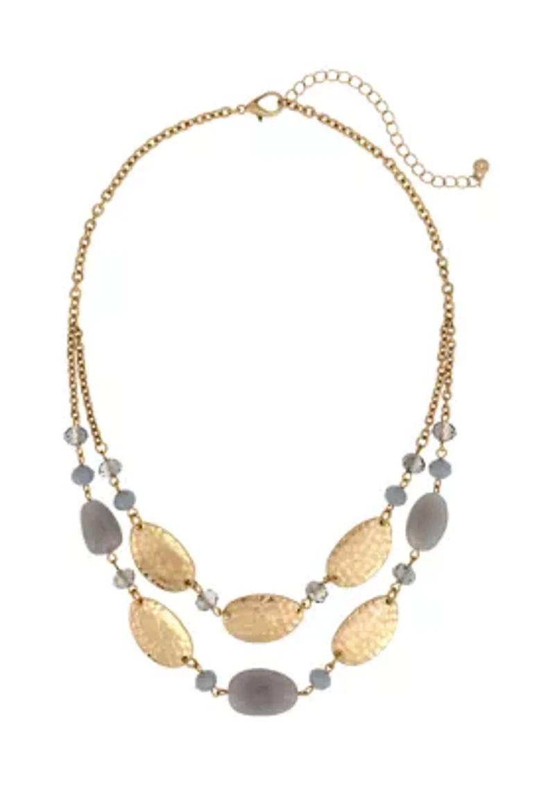 This stunning necklace from Wonderly features a multi-strand design, perfect for layering or wearing alone. The frontal style showcases linked disc beads, creating a captivating visual appeal. Lobster closure Brushed finish Imported Belk Exclusive Product Specifications 17" L Material & Care Gold-tone metal Clean with a damp cloth or soft brush