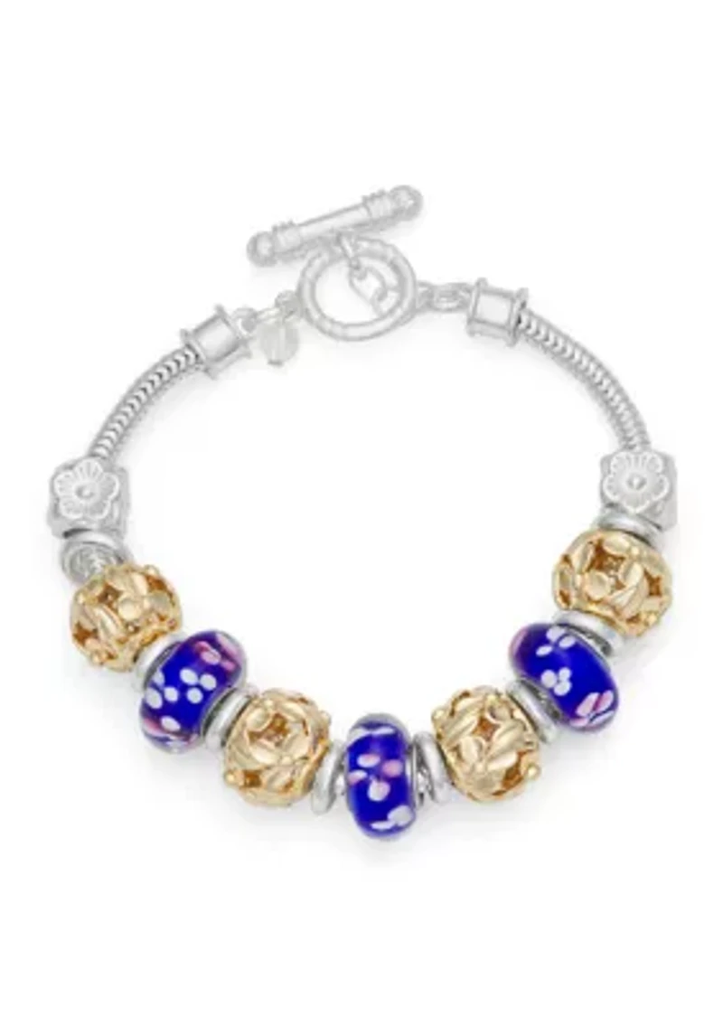 Two Tone Blue Flower Slider Bracelet