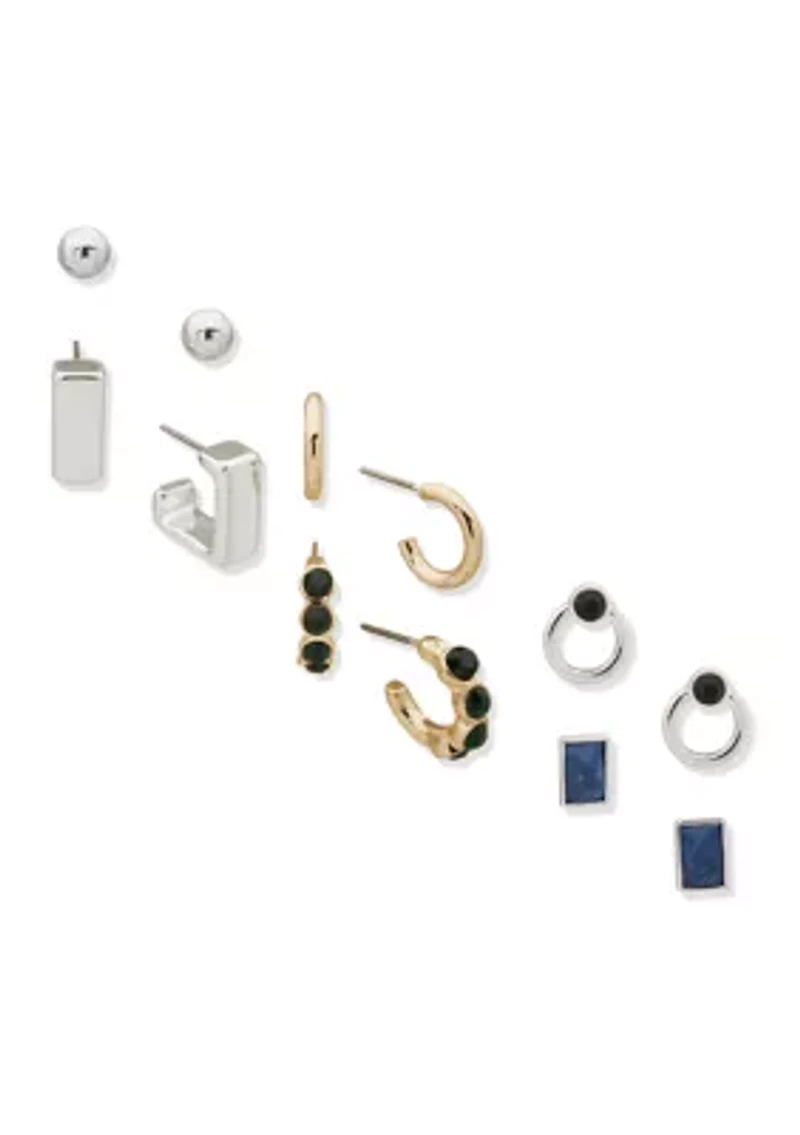 Chic and fabulous, these stylish earrings from Nine West can be paired with any ensemble for an elevated look. Dimensions: Earrings 1: 0.24" x 0.24" Earrings 2: 0.34" x 0.25" Earrings 3: 0.46" x 0.08" Earrings 4: 0.43" x 0.37" Earrings 5: 0.51" x 0.51" Earrings 6: 0.48" x 0.15" Set of 6 Post back earring Polished finish Imported Material & Care Two-tone metal Clean with a soft cloth