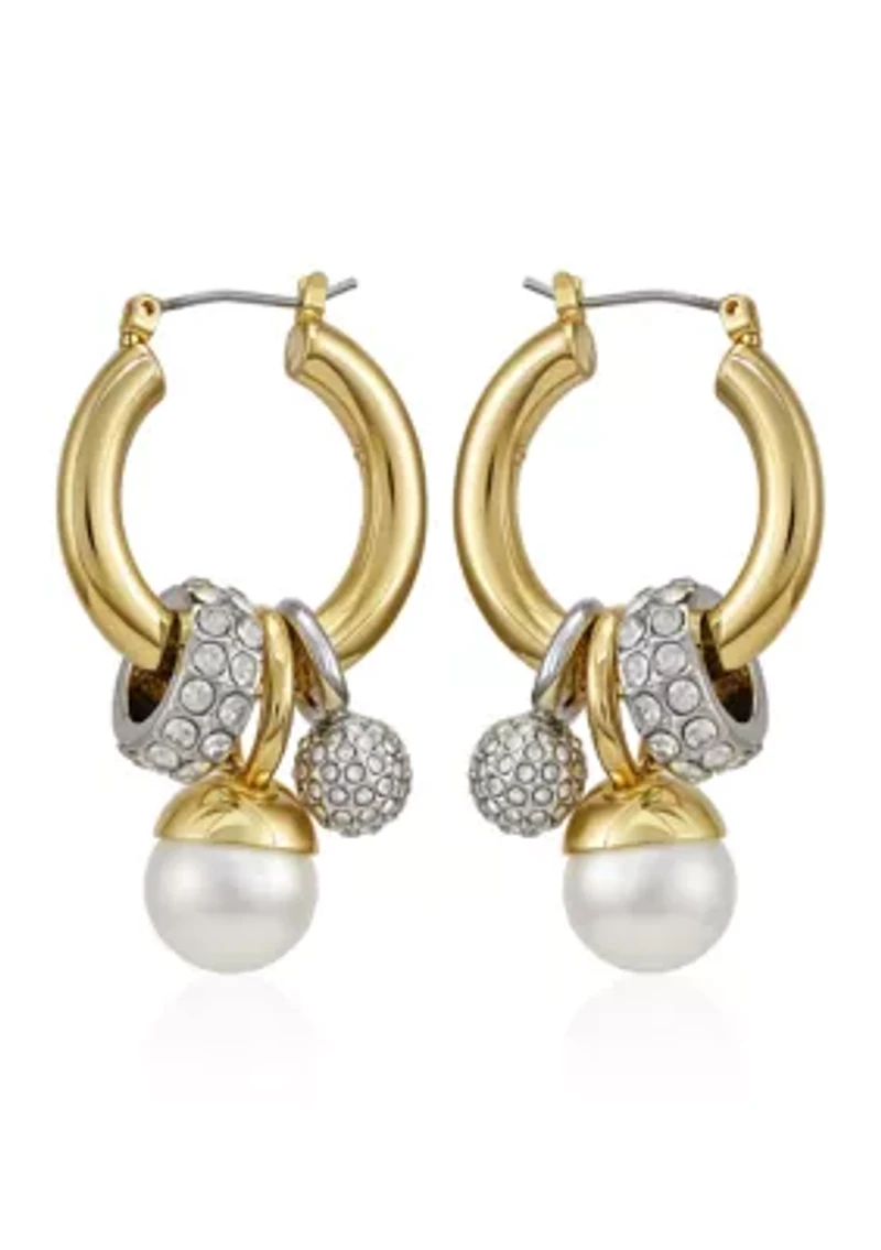 Add modern glamour to the jewelry collection with these Vince Camuto two-tone drop earrings. Featuring a sculptural gold-tone design accented with luminous white pearls, this statement style blends contemporary edge with classic charm. Lightweight yet eye-catching, they are perfect for both special occasions and polished everyday wear. Click top closure Imported Product Specifications 50 mm L Material & Care Two-tone metal, 14K gold Clean with a soft cloth