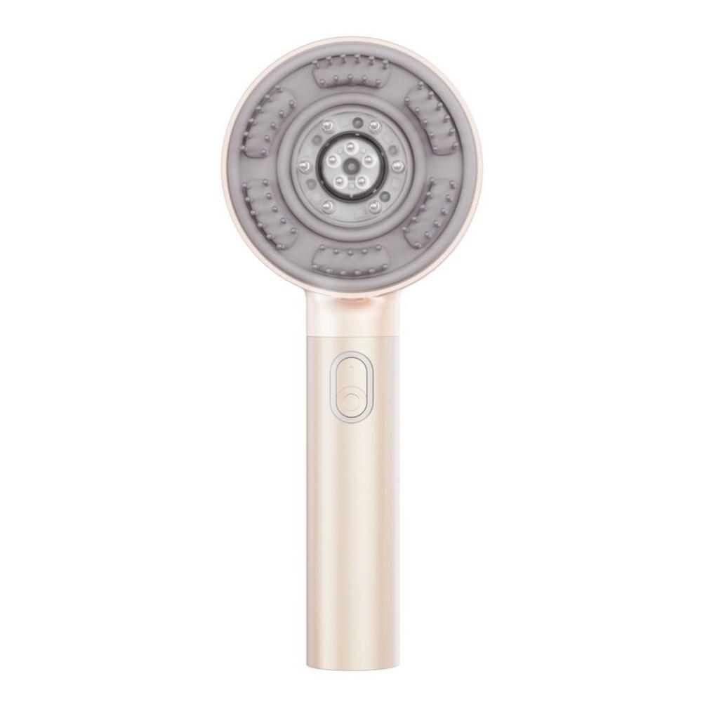 TriThera Hair Brush Gold Blush. Benefits: Dual massage with multi-channel microcurrent massage, relaxes the scalp and relieves fatigue. Even liquid dispensing as rollers evenly discharge liquid, use with or without oil. Scalp care with 6 beams of 650nm red light, effectively activates hair follicles, strengthens hair, and prevents hair loss. Features: 9 massage combinations with 3 levels of EMS and 3 levels of kneading massage. IPX7 shower-friendly, suitable for both dry and wet use. Easy to clean, the liquid storage tank can be disassembled for convenient cleaning. Key Notes: Long battery life will last 7 days on one charge (average use once per day), fully charge in 2 hours. Lightweight and portable, wireless, less than 300g, compact, and easy to carry.