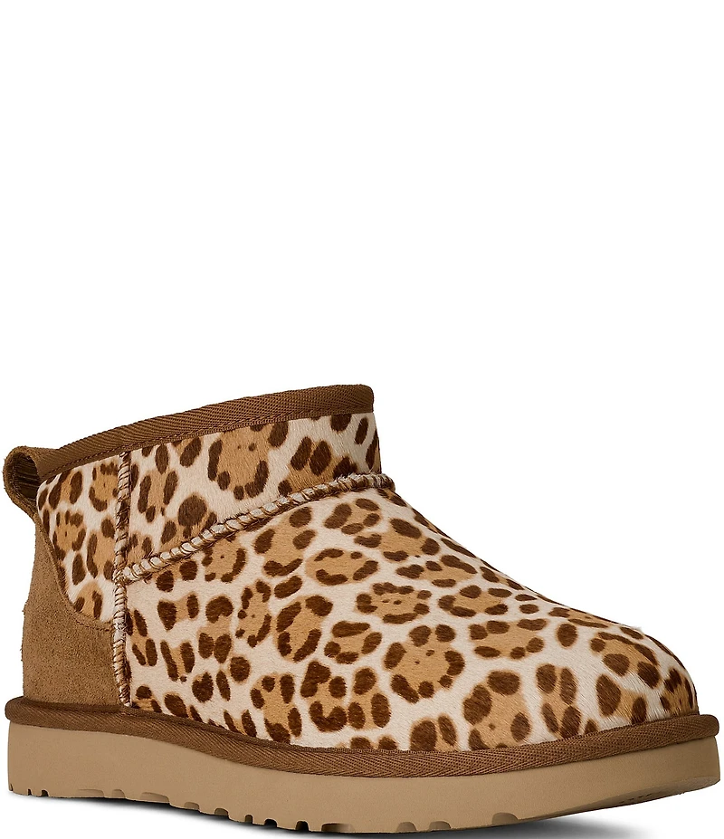 UGG Classic Ultra Mini Plains Leopard Cow Hair Booties