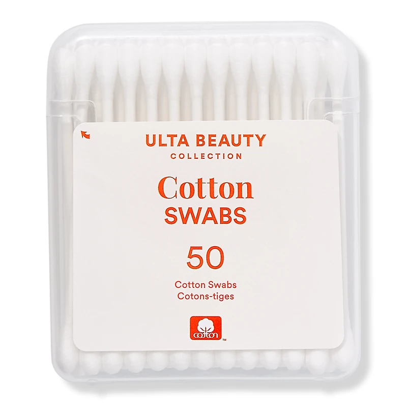 COTTON SWAB TRAVEL CASE 50CT 50CT. Benefits: Small and compact case lets you travel light. Features: 50 paper stick center cotton swabs. 100% Cotton tips. Reusable case. Case made from 100% Post-Consumer Recycled (PCR) Plastic. :