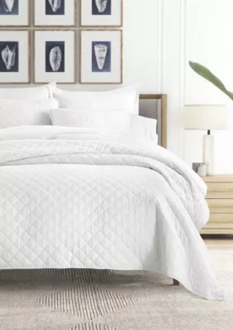 Ultra Soft Microfiber Diamond Stitch All Season Quilt Coverlet Set with Shams