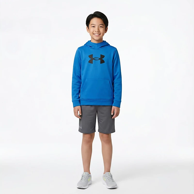 When the temperature drops, stay warm by donning the Under Armour Boys' Big Logo Armour Fleece Hoodie. The soft, stretchy Armour Fleece® traps body heat near your skin to keep you cozy. A hood and kangaroo pocket offer extra protection when you need it, while printed graphics elevate your look.