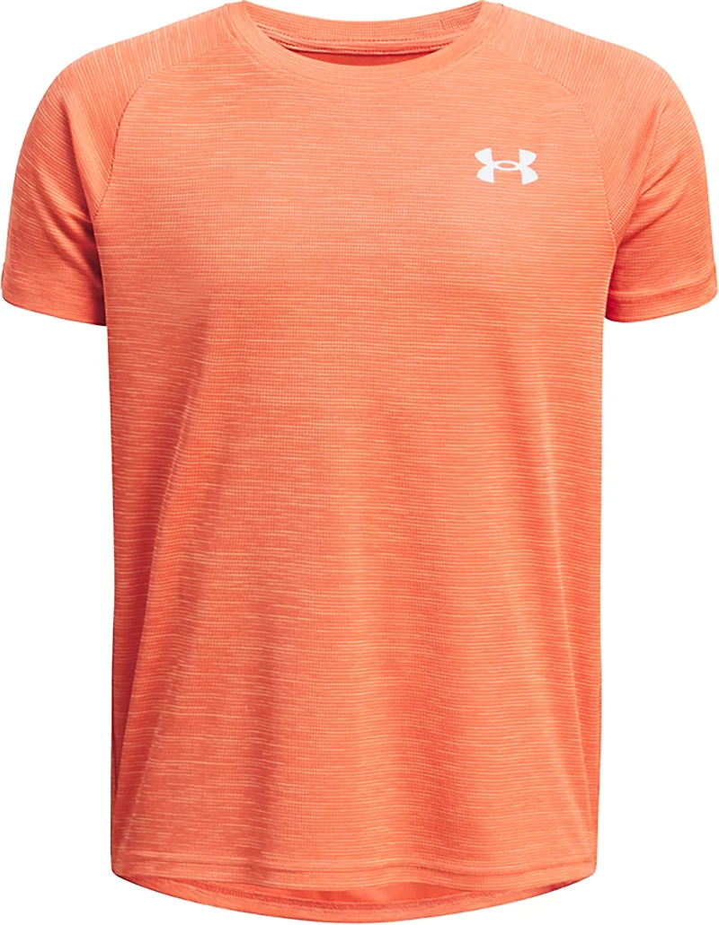 Stay comfortable from recess to the classroom in this Under Armour Boys' UA Tech™ Textured Short Sleeve T-shirt. It is made of 100% polyester for durability and a lightweight feel, and UA Tech™ technology wicks moisture and dries quickly to help keep you comfortable.