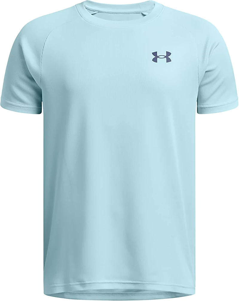 Stay comfortable from recess to the classroom in this Under Armour Boys' UA Tech™ Textured Short Sleeve T-shirt. It is made of 100% polyester for durability and a lightweight feel, and UA Tech™ technology wicks moisture and dries quickly to help keep you comfortable.