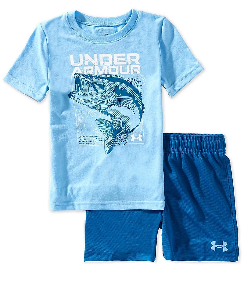 Under Armour Little Boys Short Sleeve Bass Graphic T-Shirt & Flat Back Mesh Shorts Set