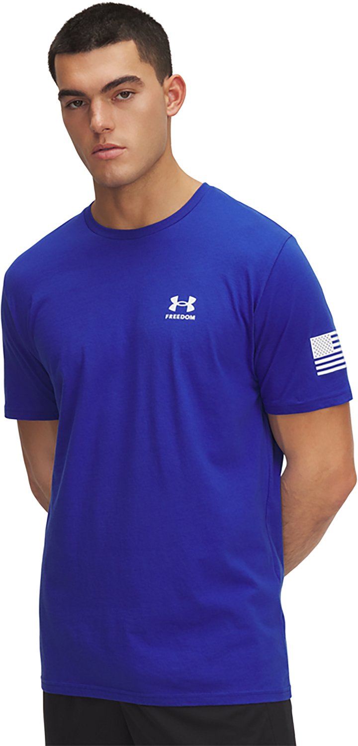 Inspire and elevate your training with the Under Armour Men's Freedom Flag Training Tee. The cotton-polyester blend delivers all-day comfort, and the bold styling features a U.S. flag graphic print.