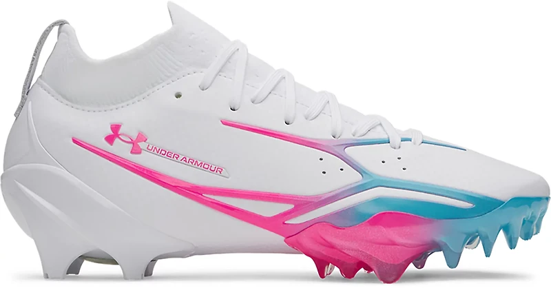 Stay active and agile on the field in these Under Armour Men's Spotlight Pro Chrome Football Cleats. They’re designed with premium synthetic uppers and a UA IntelliKnit collar for a comfortable, sock-like fit, and the HOVR drop-in midsole creates maximum energy return to keep you on your toes.