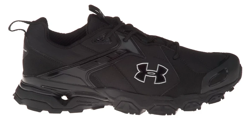 The Under Armour™ Men's UA Janan Running Shoes feature ripstop nylon uppers for breathability and to help prevent mud and debris from entering the shoes. ArmourBound® provides full-length, responsive cushioning and helps maintain an even distribution of impact forces, while ArmourLastic® absorbs shock at critical impact zones in the heels and forefeet. Lace-up design. 6.7 oz. per shoe.