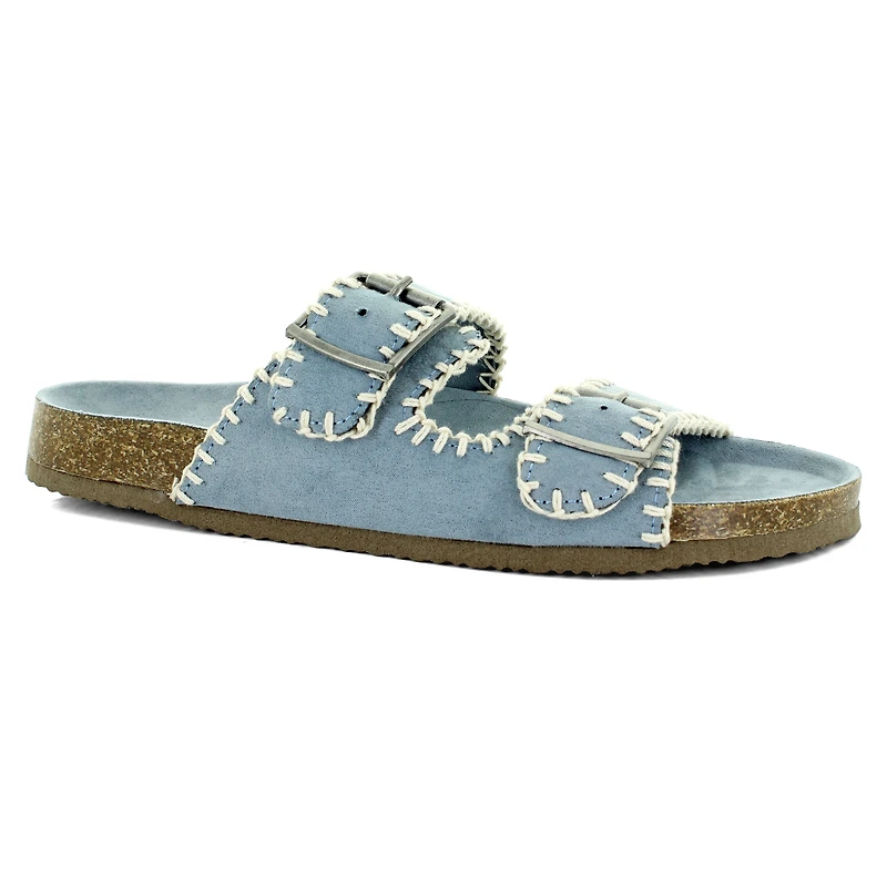 Step into simple style and all-day comfort with the Unionbay Mina sandal. The soft fabric upper and dual side buckles allow for a secure and customizable slip-on experience. Designed with a contoured insole, these sandals provide the support you need for any activity. Whether you're out and about or just unwinding, the Mina sandal delivers the perfect mix of style and everyday functionality.