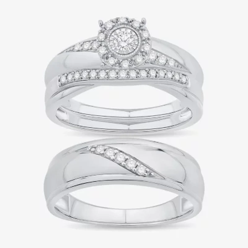 Unisex Adult 1/3 CT. T.W. Natural White Diamond 10K White Gold Round Halo Side Stone Ring Set