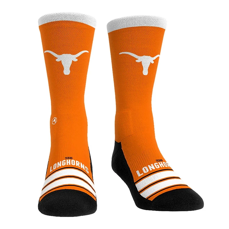 Show your Texas Longhorns pride from the ground up with these Rock Em Socks Gametime Stripe Crew Socks These Texas Longhorns crew socks are made with a blend of materials that wicks away moisture to help keep your feet feeling dry and comfortable With their eye-catching design these socks are the perfect way to show your team spirit on game day or any day