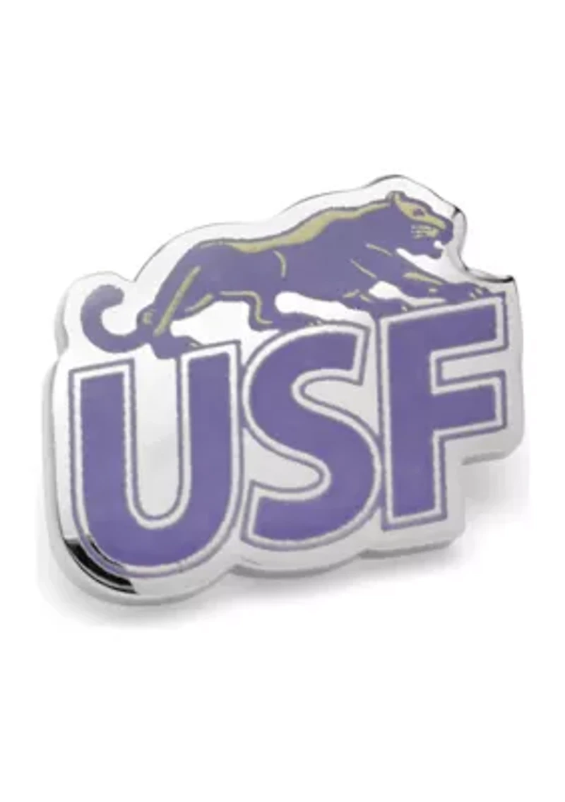 If you are a fashionable fan of the USF Cougars, upgrade your ensemble with the officially licensed University of Sioux Falls Cougars Lapel Pin on your lapel. Featuring the official university logo in enamel on silver tone plated metal, sport this collegiate pin any day of the week to support your favorite team without compromising your style. Features a clutch-back closure to easily fasten onto your lapel. Officially licensed by the NCAA. Butterfly clasp Warranty available Imported Product Specifications 7/8" Material & Care Silver-tone metal Clean with a soft cloth.