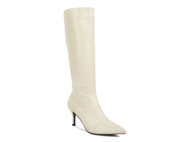 Bring out your wily side in the Uptown boot from London Rag. The croc-printed design, sleek silhouette, and sharp heel combine for a bold add to your closet.
