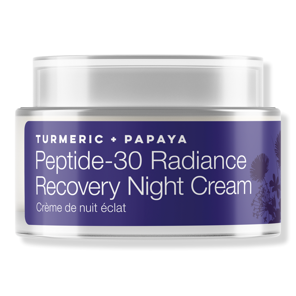 NIGHT CREAM RADIANCE. Benefits: Helps brighten uneven skin tone and reduce the appearance of hyperpigmentation with antioxidant-rich turmeric.. Improves skin texture and elasticity - the tetrapeptide-30 supports a smoother, more youthful complexion.. Deeply hydrates skin overnight using glycerin and emollients, helping skin feel supple and rested.. Soothes inflammation and calms reactive skin thanks to licorice root extract.. Helps reduce fine lines and signs of aging - Arjuna extract is traditionally used for firming and wrinkle support.. Leaves skin feeling soft, nourished, and lightly scented, with a botanical aroma from patchouli, frankincense, and lavender oils.. All skin types - formulated to balance and soothe without feeling too heavy.. Key Ingredients: Tetrapeptide30 - A short-chain peptide known to help reduce pigmentation and support a more even skin tone.. Turmeric (Curcuma Longa) Root Extract - A powerful antioxidant ingredient that helps combat skin oxidation and reduce uneven tone.. Liquorice (Glycyrrhiza Glabra) Root Extract - Helps restore suppleness, soothe, and support skin elasticity.. Arjuna Bark Extract (Terminalia Arjuna) - Clinically studied to help reduce the appearance of wrinkles and improve firmness.. Goji Berry Extract (Lycium Chinense) - Rich in vitamins A & C and antioxidants, supports collagen health and skin radiance.. Papaya Fruit Extract (Carica Papaya) - Contains natural enzymes that gently exfoliate and renew the skin surface.. Sweet Almond Oil (Prunus Amygdalus Dulcis) - Provides essential fatty acids and nourishment for a soft, smooth texture.. Botanical Oils (Orange Peel, Patchouli, Coriander, Cedarwood, Marigold, Frankincense, Lavender) - Deliver a calming, spa-like scent and additional skin-supporting properties.. Glycerin (Vegetal) - A top-rated humectant that draws moisture into skin to maintain hydration through the night. :