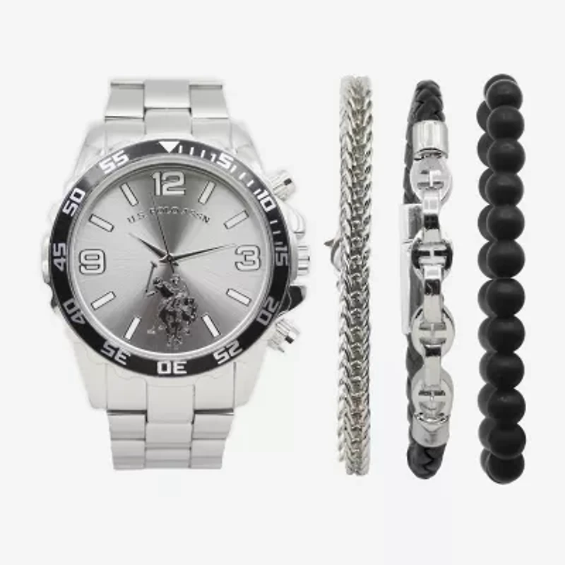 U.S. Polo Assn. Mens Silver Tone 4-pc. Watch Boxed Set Usc20296jc